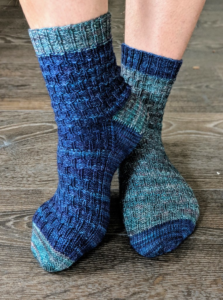 A simple top-down sock with a short leg and a heel flap construction, One Art is a beginner sock designed to let a gorgeous fingering weight yarn (or two) speak for itself.